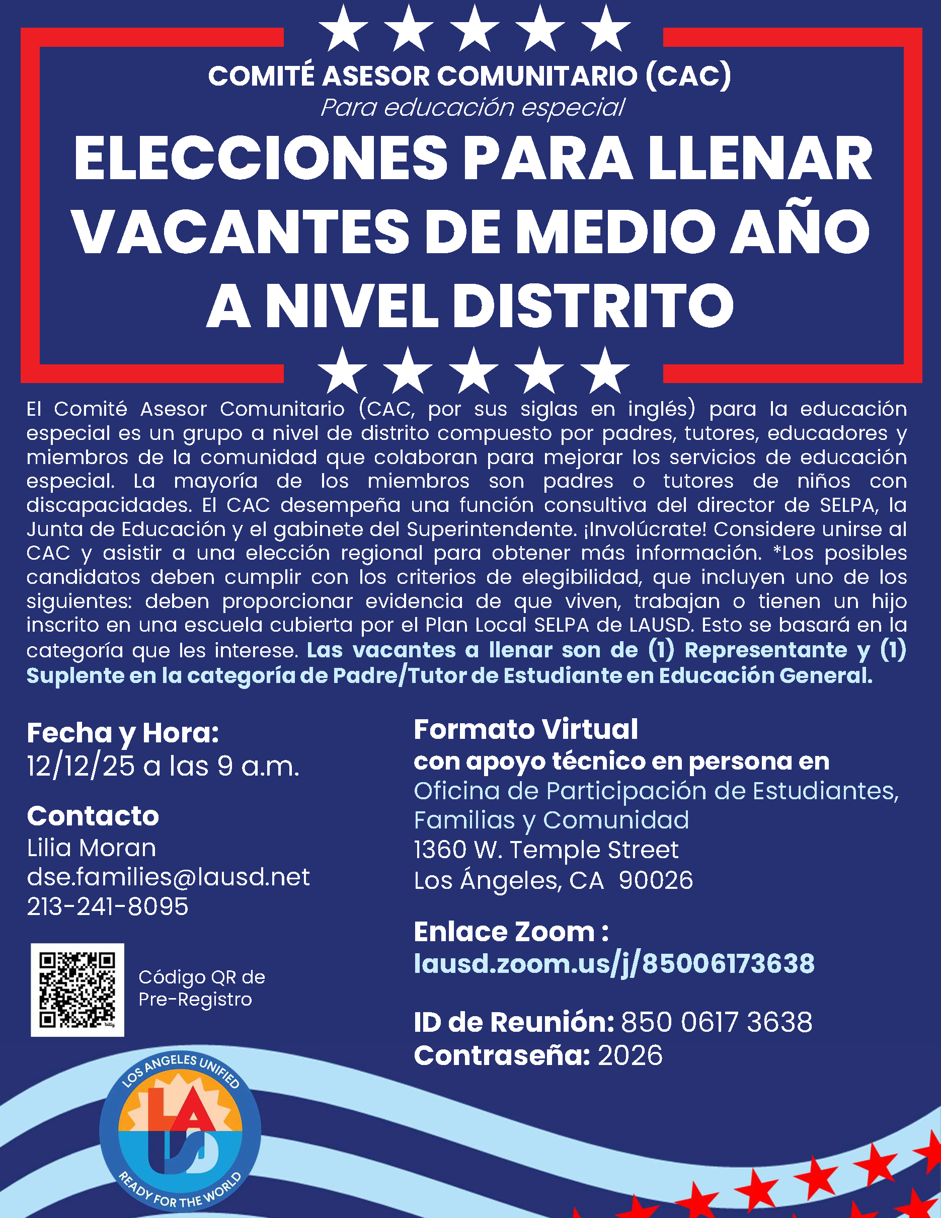 Due process hearing requests are dispute resolution proceedings required to be available to parents and school districts under the Individuals with Disabilities Education Act (IDEA). You or the District may file a due process complaint on any matter relating to a proposal or refusal to initiate or change the identification, evaluation or educational placement of your child or the provision of a free appropriate public education (FAPE) to your child. The proceedings begin with the submission of a complaint notice and include a resolution period with a mandatory resolution session meeting, optional mediation, and a due process hearing before an impartial hearing officer. The District convenes the resolution session meeting. The Office of Administrative Hearings (OAH) conducts the optional mediation and the due process hearing. It may not be necessary to go through all of the due process proceedings to reach resolution. A due process complaint may be resolved by mutual agreement of the parties at any stage of the proceedings.